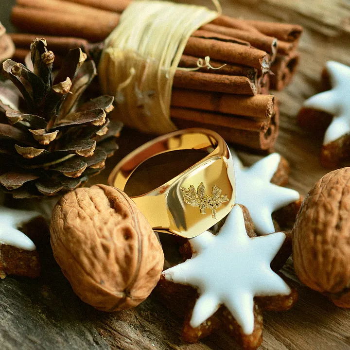 To celebrate the Christmas holidays, we promoted this gorgeous Yule ring set on an inviting backdrop featuring all those classic winter icons.