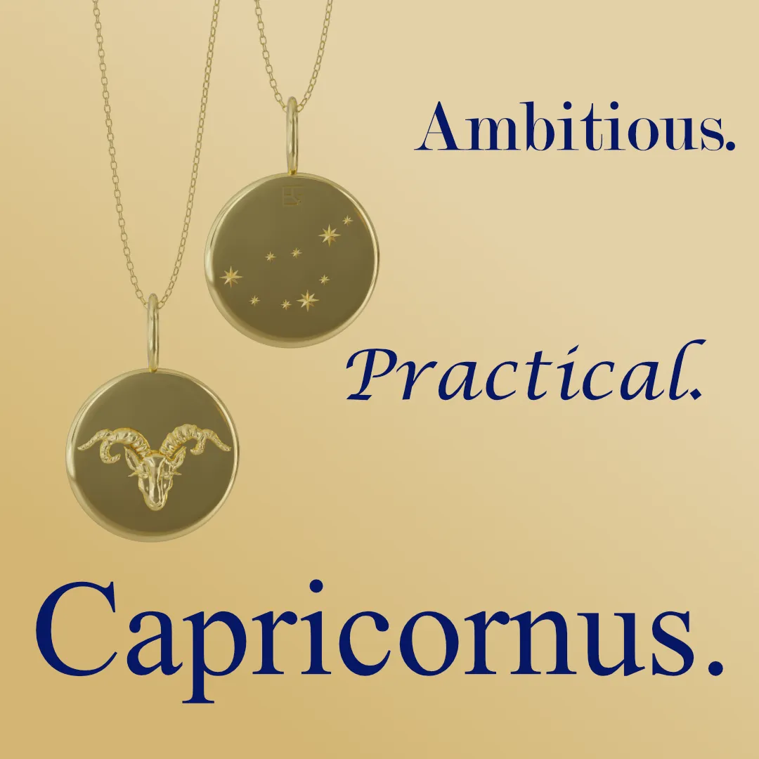 The water goat Capricornus oversees those born in the month of December. Celebrating these patient and reserved individuals, we promoted our Capricornus charm with this banner.
