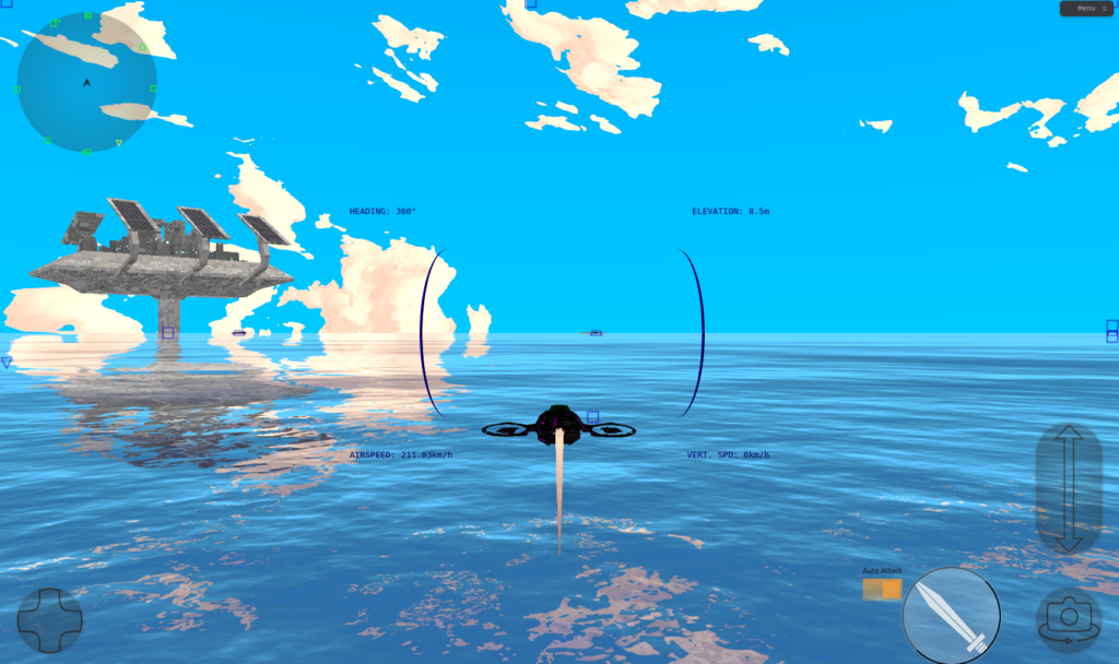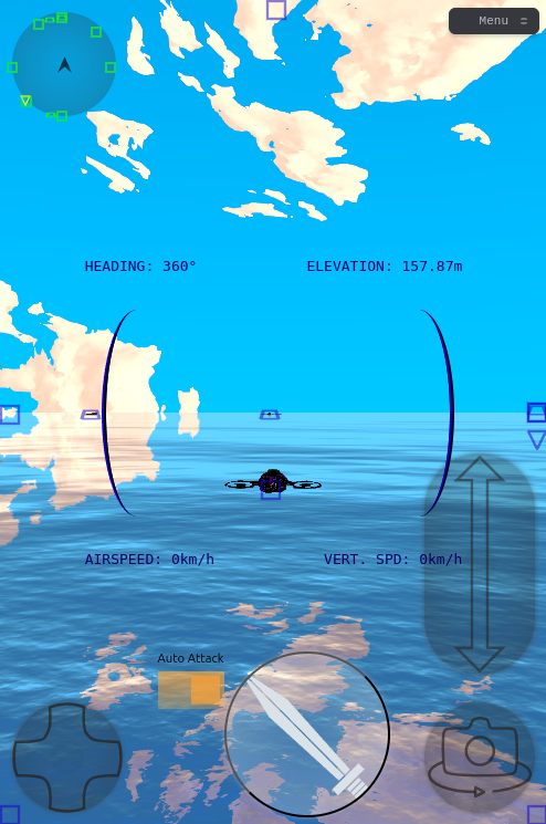 To assist with testing and this stage of development, auto attacking hostile targets is built into the user interface. A player simply has to fly within the scanner range of an enemy and their aircraft will automatically start firing missiles. In future versions, players will be able to manually fire missiles using the on-screen interface and an assigned keyboard button.